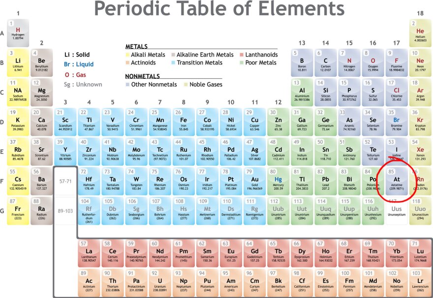 What is this stuff that can't be seen or found? Well, here's a hint. It's sitting modestly in a lower row in the Periodic Table, down on the lower right, in a box marked "At."