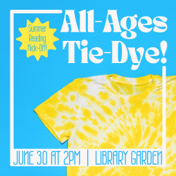 It's a tie-dye extravaganza! Join us for an All-Ages Tie-Dye event to kick off our Summer Reading Program! We'll provide all the materials you'll need to create a vibrant work of art. This program will be held in the Library's auditorium if the weather is poor.