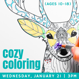 Best for ages 10-18. Join us for some Cozy Coloring and hot chocolate.