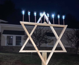 Etz Hayim Synagogue continues its annual tradition of lighting its giant outdoor electric menorah on December 19. The menorah was constructed by Jay Madnick with his son Aaron and is electronically controlled to display its festive colors for the community to enjoy. Join us for the 6th night of Hanukkah and Shabbat Services, as we join in prayer and song. The community is encouraged to bring their menorahs with seven candles (including the shamash), as we light up the synagogue bringing light to our world. Jelly donuts will be served in remembrance of the miracle of oil. Etz Hayim Synagogue is located at 1-1/2 Hood Road, Derry, NH. Visit us at www.etzhayim.org.