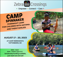 Zebra Crossings is hosting a family asthma camp at Camp Merrowvista in Tuftonboro NH from August 17-August 20th. This is a unique opportunity for families with children with asthma to participate in traditional overnight camp activities while also learning strategies for asthma management.