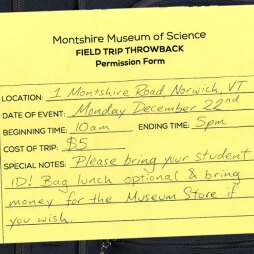 If you know a hardworking young adult (ages 16+) in need of a nostalgic throwback, pass the word that entry to the Montshire is $5 on Monday, December 22 with a current student ID (high school, college, trade school, or apprenticeship accepted). Relive your favorite memories from field trips of yesteryear! Enjoy hands-on exhibits and activities at the Science Discovery Lab, do some last-minute shopping for the fam, and reconnect with your childhood friends…through science!