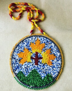 One of the featured artists is Kimberly-Ann Lussier, a member of the Missisquoi band of Abenaki of northern Vermont, who specializes in the Native American art of beading. “Beading is my voice - unyielding, radiant and alive - proclaiming that Indigenous presence will never be erased,” Kimberly-Ann explains. Her art work uses vibrant colors and designs inspired by nature, incorporating geometric, floral and woodland elements. Materials used range from glass beads and leather to bone hair pipe beads and sinew. She designs for friends, family and sells pieces on her website, Monadnock Beaded Creations.