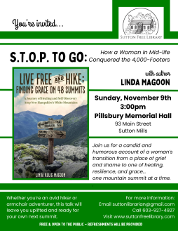 Live Free and Hike: S.T.O.P. to Go: How a Woman in Mid-life Conquered the 4,000-Footers with local author Linda Magoon