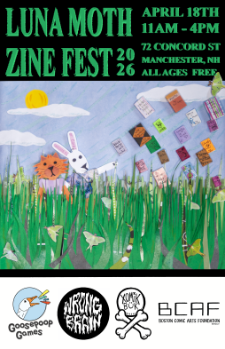 Luna Moth Zine Fest is sponsored by Goosepoop Games, Wrong Brain, Xomik Bük & Boston Comic Arts Foundation and hosted by Queerlective.