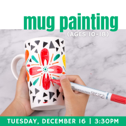 Best for ages 10-18. Celebrate the cozy season and decorate a ceramic mug with paint pens!
