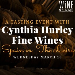 On Wednesday March 18, Wine on Main welcomes Kyle Martinez from Cynthia Hurley Fine Wines for a special tasting event. We will taste wines from France's coveted Loire Valley as well as delicious selections from Spain. Kyle will tell you the stories behind the vineyards and the families that own them. We will taste some limited hard to find bottles.