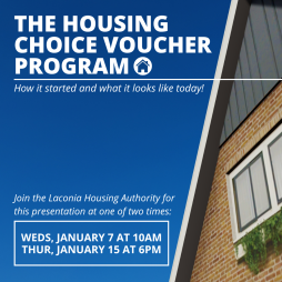 Join the Laconia Housing Authority for one of two sessions to help to answer your questions and provide thoughtful insight to the HCV program. Topics covered will include: what the HCV program is, why it is so hard to access, how to maintain eligibility, and the truth behind the numbers.