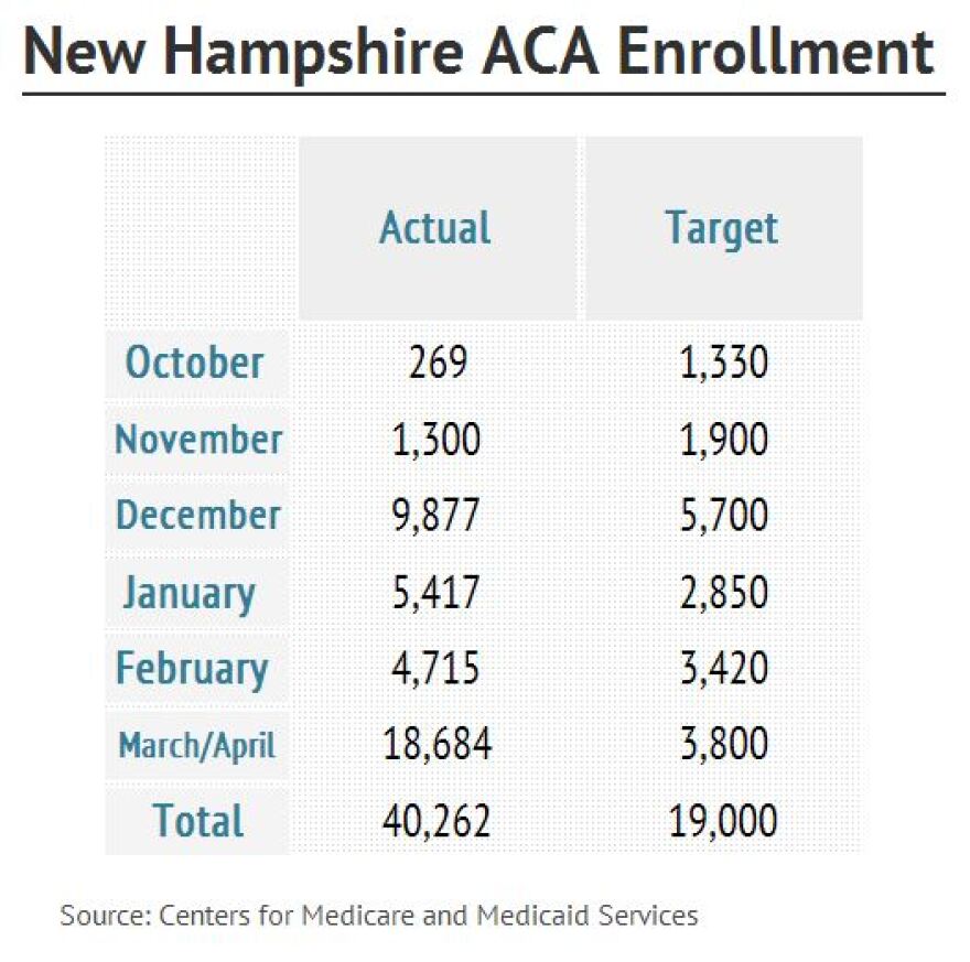 More than 40,000 New Hampshire residents enrolled in health plans through the Affordable Care Act, according to new figures out from the federal government.