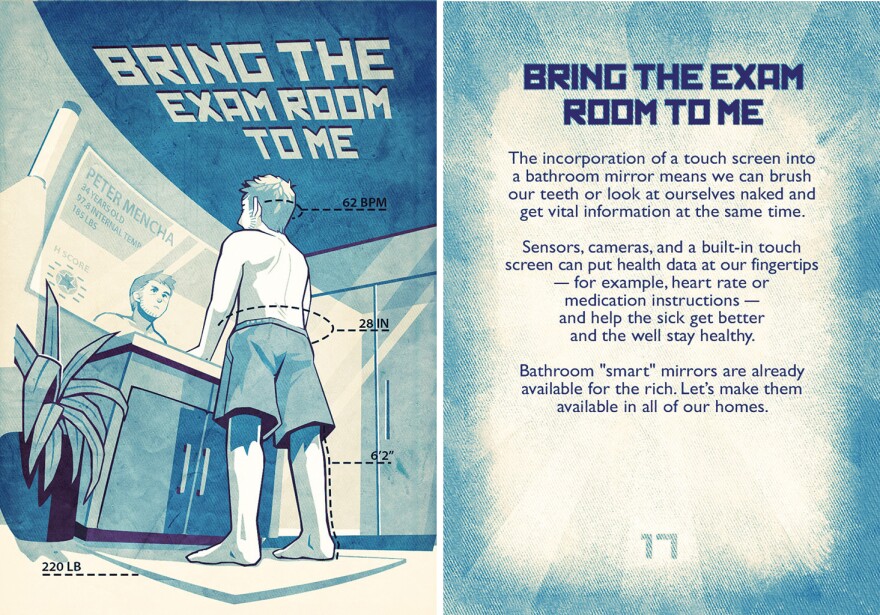Another would be for doctors and nurses to hand out health information in a way that provokes surprise and maybe smiles. He's already gotten calls from health professionals asking for cards about environmental health, sharing personal genetic information, and blood sugar.