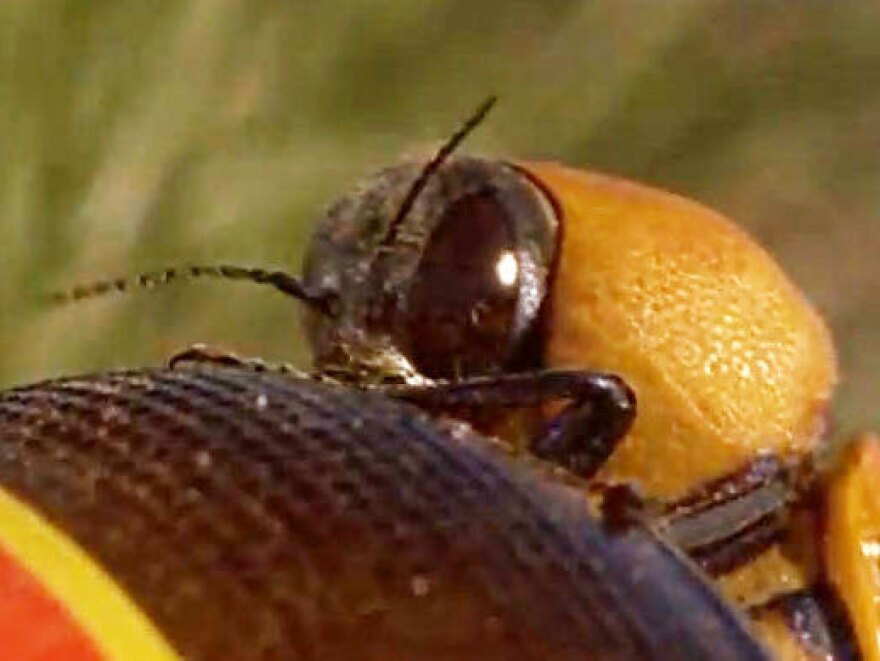 This is what biologists call "an evolutionary trap." It's what happens when birds, turtles, moths, beetles, all kinds of animals, wired to respond to certain cues in nature, bump instead into human inventions and get confused. They try to do the right thing — like having a little baby beetle, and end up spending hours scraping glass.