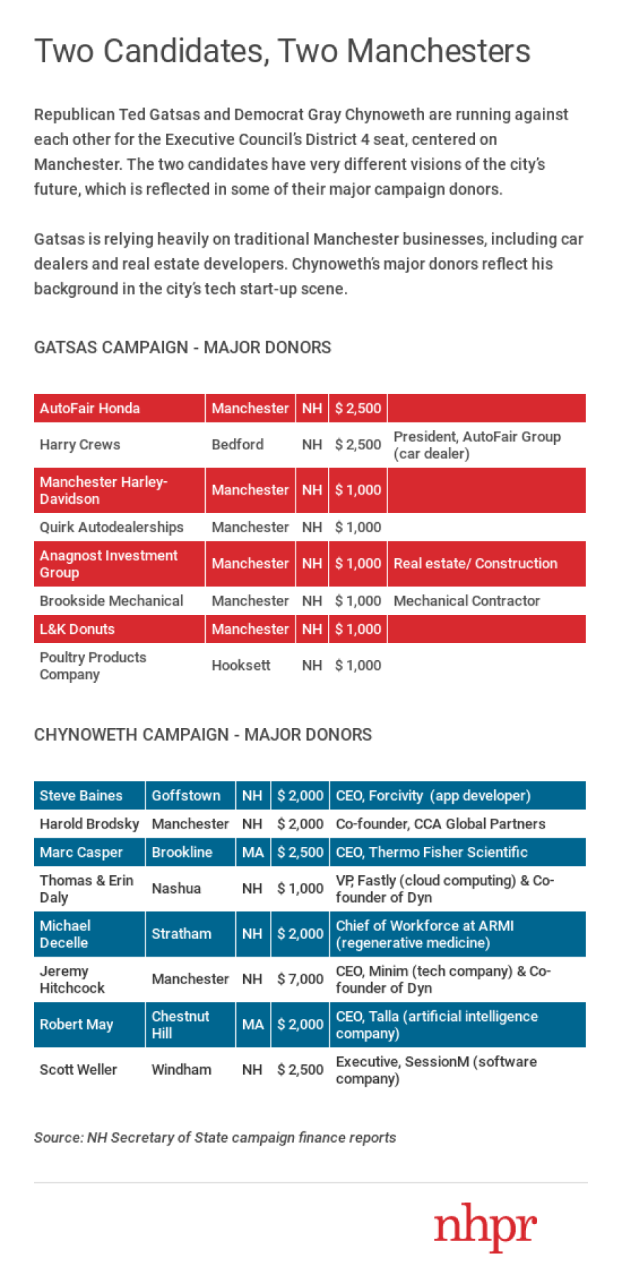 Nowhere are these opposing visions more on display than the race between Republican Ted Gatsas and Democrat Gray Chynoweth for the District 4 seat on the Executive Council.