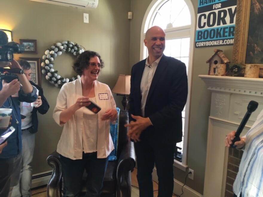 Voters like Bryan and Kristen Bannister, who are starting to put in time with candidates, are finding it crowded. I met them near the door at the Cory Booker house party, which was being propped open to accommodate the large crowd.