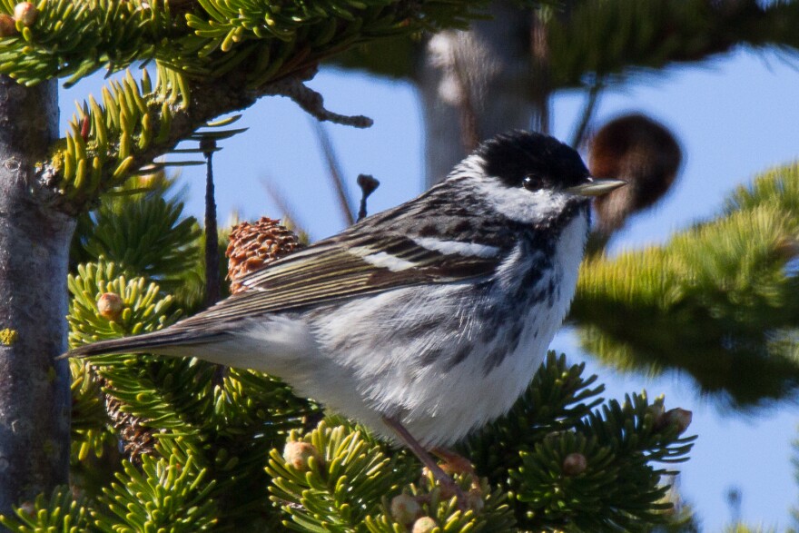 The Blackpoll Warbler is one of the most common birds of the northern boreal forest. It flies all the way to South America to spend the winter.
