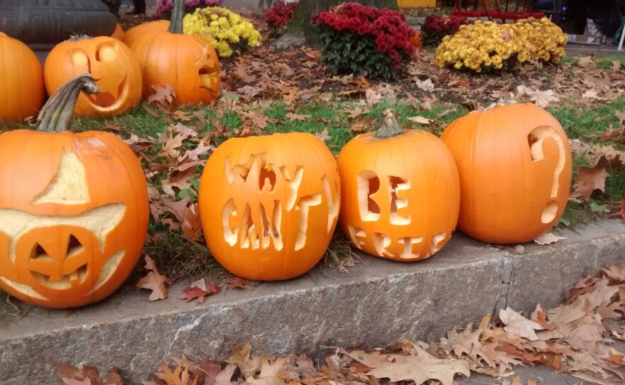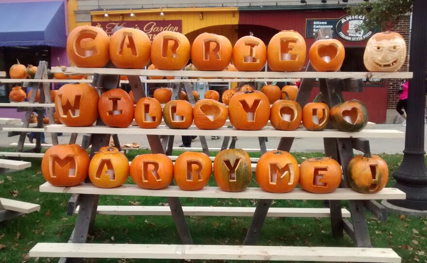 Click above to see a gallery of some of the pumpkins, which include corporate-sponsored carvings, political messages, and at least one marriage proposal.