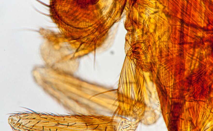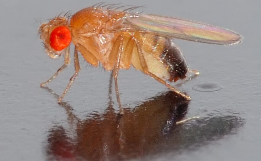 Compared to other lab species, the flies don't take up much space, they're easy to maintain and ethical treatment of the tiny bugs has not been an issue. Perhaps most important, generations come quickly, one every twelve days or so. Genetic experiments yield quick results as researchers analyze the DNA mutations of fly offspring. Give them a quick shot of carbon dioxide to calm them down and under the microscope they go.