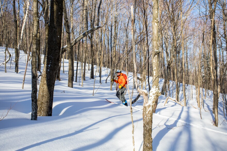 Granite Backcountry Association Chief Tyler Ray skins through a new zone the GBA pitched as a glade project to the WMNF. The effort failed due to presence of lynx habitat.